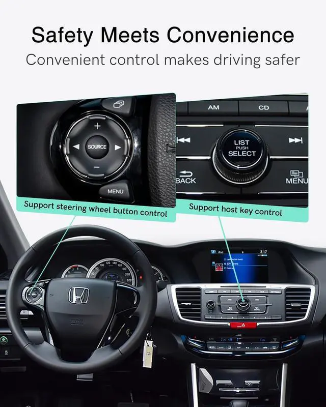 Steering Wheel & Multimedia Controls: Works with your cars steering wheel or multimedia controls to manage music playback effortlessly. Skip tracks, adjust volume, and stay drive safe without taking your hands off the wheel. ^^ See the Music on the