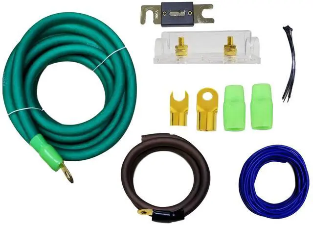 Gauge Amp Kit General Features: 1/0 gauge Power Amplifier Installation Kit Designed to install one amplifier Designed specifically for 4500 watts Peak Power Rating Power and ground wire provides optimal power transfer Made from 100% oxygen free tinned copper for a pure uninterrupted transfer of power Includes ANL Fuse holder for ideal protection for high powered systems 2 Year Manufacturer's Warranty