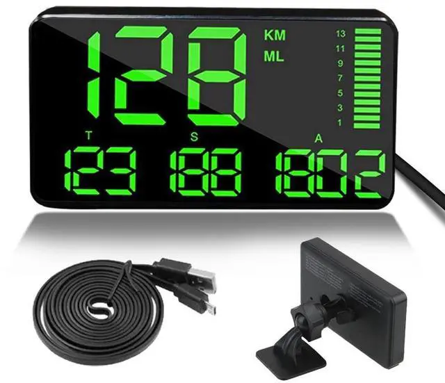 ^^ Plug & Play- This HUD calculate & display real-time speed via GPS. No Need professional installation, No wiring needed to the VSS (vehicle speed signal). With 5V output voltage USB cable, compatible with all cars & trucks; ^^ Non-skidding- With a rotatable holder & strong sticker stand, can fix HUD to your car console or windshield, prevent the HUD from skidding.