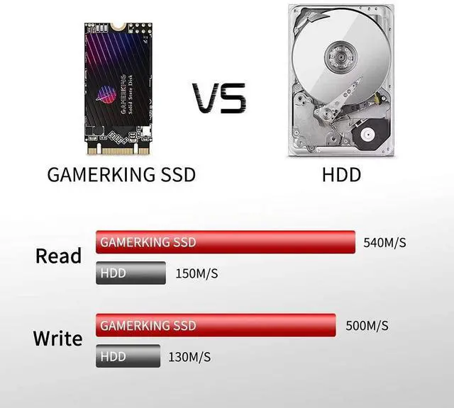 This SSD built-in hard drive has lower power consumption, does not overheat, and is almost silent during operation. You can start your computer in a few seconds, load files immediately, and speed up applications. Gamerking is anti-shock and anti-vibration, and is compatible with most systems and servers, so it is an ideal choice for ultra-thin mobile computing for gamers.