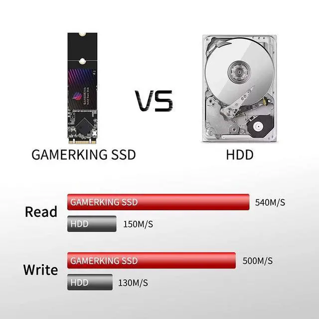 This SSD built-in hard drive has lower power consumption, does not overheat, and is almost silent during operation. You can start your computer in a few seconds, load files immediately, and speed up applications. Gamerking is anti-shock and anti-vibration, and is compatible with most systems and servers, so it is an ideal choice for ultra-thin mobile computing for gamers.