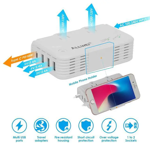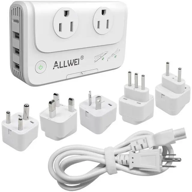 Silent working fan brings you undisturbed sleep. ^^ How to use itWhen using this power converter in the USA, you don't need use the adapters. Simply use the AC cord and plug your device into the AC outlet of the power converter. When traveling to other countries, you need to bring a matching adapter. ^^ Converter & Travel SizeConverts voltage in different countries from 90V-260V to USA standard 110V. Compact small size ( 4.9X 2.9X 1.2 inches), weighing 0.57 lb, makes it easy to pack anywhere in your luggage case. ^^ WHAT YOU GETALLWEI Universal Travel Adapter, Include 5 feet detachable US power cable and 5 International adapters, storage bag, user manual, 18 months warranty and 100% customer service.