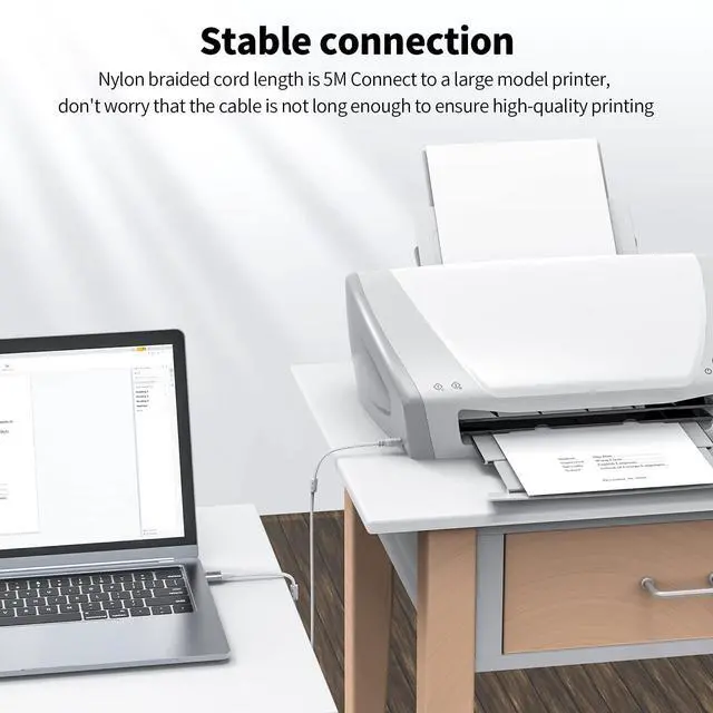 ^^ Stable & DurableThis USB printer cable adpot 24strands high density braided wire, and nylon braided jacket wraps the cable to make it is not easily broken and cracked. And the printer calbe not only strong but flexible plug and unplug. ^^ Universal CompatibilityThis Printer Cord compatible with all USB B port devices such as HP Deskjet 3050/1112/2540/3630, HP Officejet 5740, HP Envy 4527/4520/4523/5540, HP photosmart 7520/5520/5510/C4750, HP 8600 office pro, HP Laserjet Pro M118DW, Canon MG5750/MG3550/MG7550, Epson XP225/XP245/XP425/XP-600/XP200/WF7710/XP446/XP440/XP630/XP310/C88+, Brother DCP-L2520DW/HL-L2300D, Lexmark MX310DN, Dell C2665DNF, Samsung Xpress SL-C1860FW, DAC etc ^^ What You Get And WarrantyPackage include: 1 x USB printer cable. And all our product have 12-month after-sale warranty. If you have any problem, please feel free to contact our customer services.