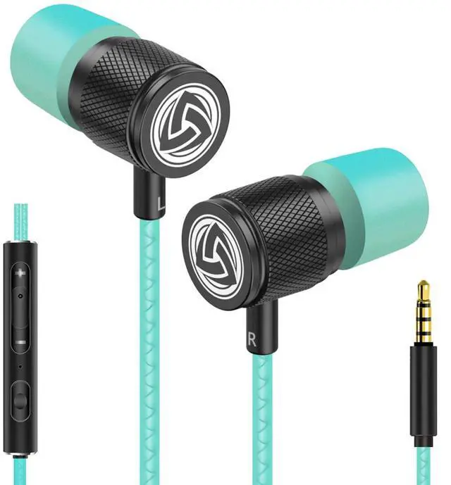 LUDOS Ultra Wired Earbuds in-Ear Headphones, 5 Years Warranty, Earphones with Mic, Noise Isolating Ear Buds, Memory Foam for iPhone, Samsung, School Students, Kids, Women, Small Ears - Turquoise