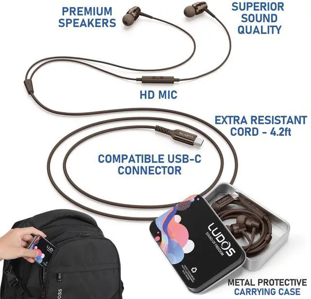 GET THE PRIVACY YOU WANT & NOISE ISOLATION LUDOS OMNITONE Type C earbuds not only deliver the highest quality sound, the type C headphone also helps block out distracting background noise when youre in public settings. They deliver flawless sound without leaking your music or sound to people around you