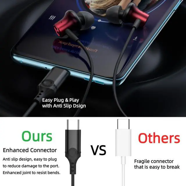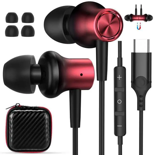 Upgraded Magnetic USB C Headphone: Earbuds designed with magnetic metal casing, looks stylish than the plastic earbuds, magnetic design allows you to tab the earbuds around your neck for convenient wearing and tangle free experience