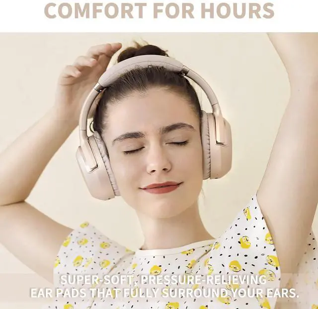 BAIHUAFRU Wireless Over Ear Headphones Noise Cancelling Bluetooth Headphones with Mic, Up to 80H Playtime, Stereo Surround Sound Wireless Bluetooth Headset for PC Cellphone Home Office (B131RosePink)