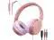 Kids Wired Headphones with Built-in Microphone, 85/94dB Safe Volume Limiter, Foldable, 3.5 mm Jack Over-Ear Cord Headset for Online Study/Travel, Compatible with Tablet, iPad, PC&More (Pink/Light Pink)