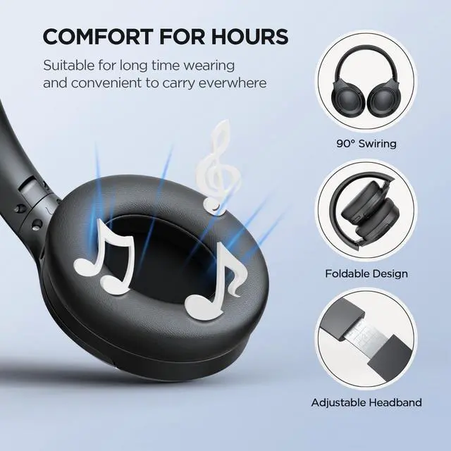 FocoMyLord Active Noise Cancelling Headphones with Transparency Mode, 80H Playtime Wireless Over Ear Bluetooth Headphones with ENC Microphone, Deep Bass, Memory Foam Ear Cups, for Travel, Home Office