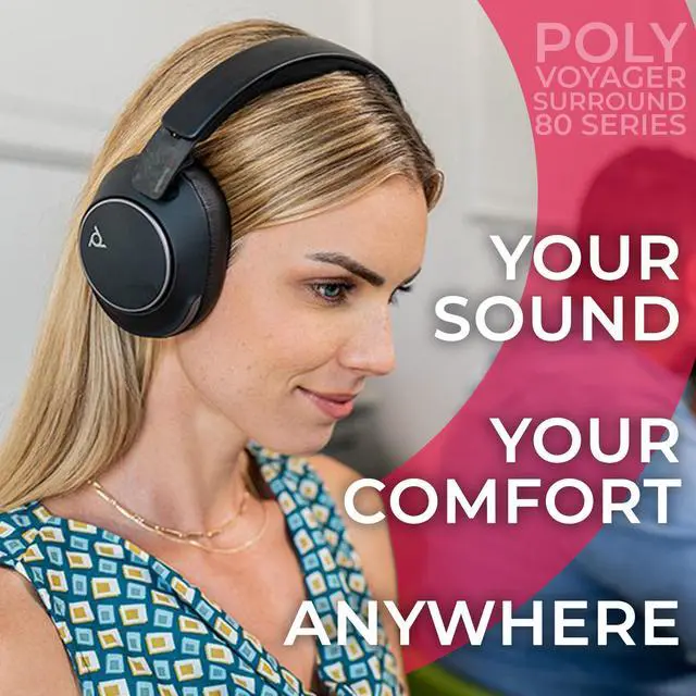 TAKE YOUR CALL ANYWHERE: The Poly Voyager Surround 80 Bluetooth Wireless Headset is equipped with 6 built-in microphones in a discreet boomless design. It becomes your portable studio, embark on a journey where your workspace extends beyond walls.