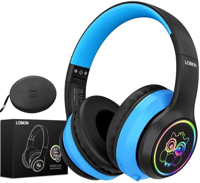 LOBKIN Kids Headphones Bluetooth 5.4,Over Ear Kids Headphones Wireless with Mic 50H Playtime Colorful LED Lights AUX Cord 94dB Safe Volume Limited Foldable Design for Boy Girl Travel/School/iPad