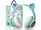 KERHAND Bluetooth Headphones for Kids, Cute Ear Cat Ear LED Light Up Foldable Headphones Stereo Over Ear with Microphone/TF Card Wireless Headphone for iPhone/iPad/Smartphone/Laptop/PC/TV (Green)