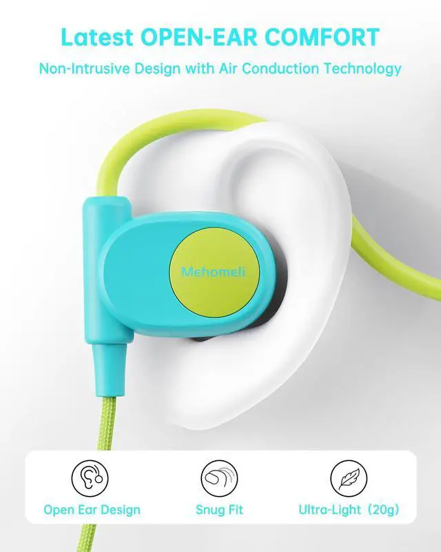 Mehomeli Kid Headphones for School, Air Conduction Open Ear Headphones, 3.5mm Jack Wired Cord, Ultra-Comfort, Ergonomic and Lightweight Design Perfect for School and Outdoor Activities-Blue Green