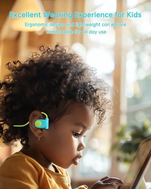 [Latest Open-Ear Design]:Kids headphones feature a new generation of open-ear design using Air Conduction Technology. They can directionally deliver premium audio without covering the kids' ears, ensuring they can hear surrounding sounds. This special design provides a unique listening experience for your children while they study at home, school, or on the train, helping to prevent potential dangerous situations