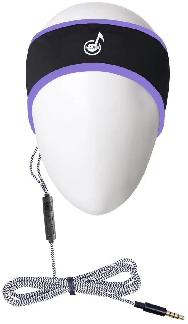 MMUSS Sleep Headphones With Headband with Ultra Thin Stereo Speakers Control Button. Perfect for Sleeping, Sports, Air Travel, Meditation and Relaxation (SHButton Purple 3.5 mm)