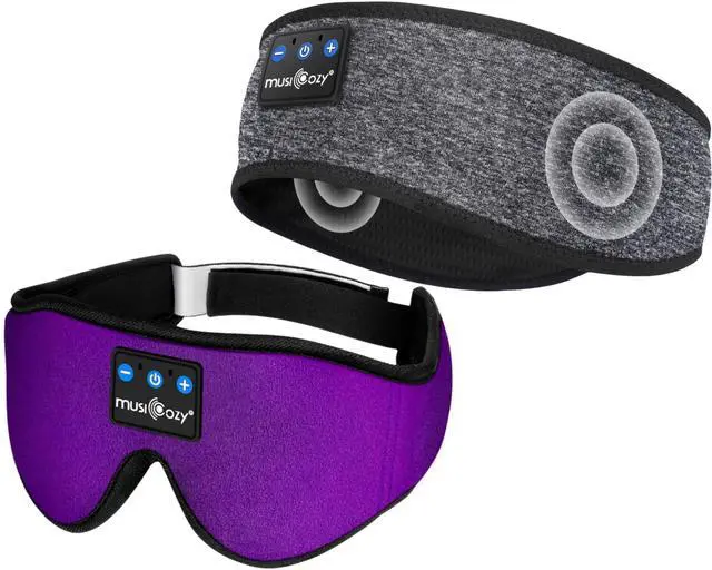 MUSICOZY Sleep Headphones Bluetooth Headband Sleeping Headphones Sleep Mask, 3D Wireless Music Sleeping Headband for Side Sleepers Men Women with Thin Stereo Speaker Cool Tech Gadgets Gifts of 2 pack