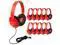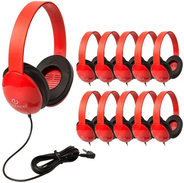 Egghead Heavy-Duty Kids' Headphones with Padded Ear Cups and 6' Cord, Adjustable Tangle-Free Plastic Classroom Headphones for Kids, Pack of 10, Red
