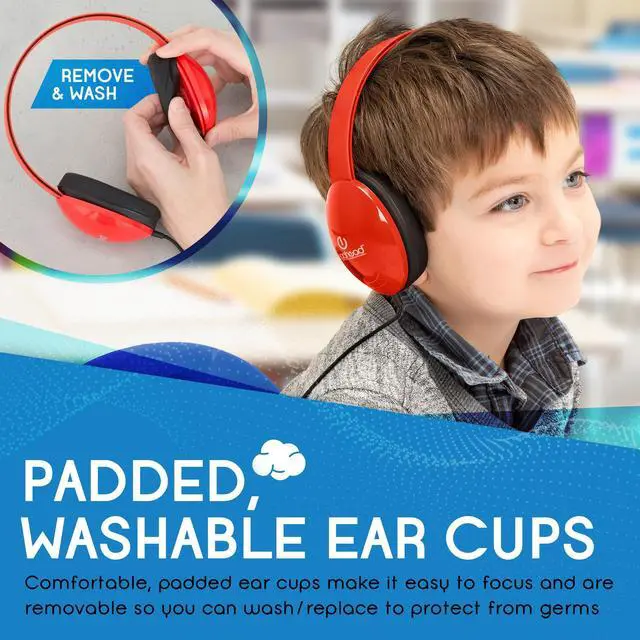 • PROTECTIVE PADDED EAR CUPS: Colorful, padded ear cups make it easy to focus on audio lessons even in busy classrooms and are washable/replaceable as needed