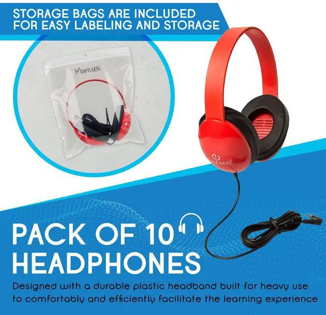 • PACK OF 10 KIDS CLASSROOM HEADPHONES: Designed with care to facilitate learning comfortably and efficiently in preschool classroom environments, offering a high-quality, durable headphone you can rely on time after time