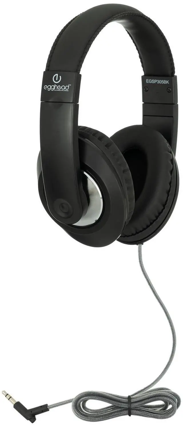The Egghead (r) Classic Over-Ear Headphone offers a perfect combination of durability and comfort, making it an ideal choice for both casual and long-term use. Featuring soft leatherette ear cushions and a padded, adjustable headband, these headphones provide a comfortable fit for all users. The five-foot Tri-Shield cord resists kinking and tangling, ensuring long-lasting performance, even with frequent use. A 3.5 mm, 120deg slim barrel plug ensures a secure audio connection, minimizing the risk of accidental breakage and ensuring compatibility, even with devices encased in thick protective covers.
