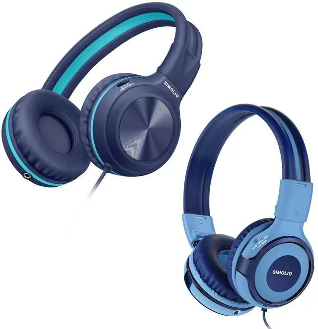 SIMOLIO Stereo Wired Headphones Teens Adult Kid Youth w/Mic & Volume Control & Volume Limited & Share Port & 3.5 mm Jack, Safe Volume Durable Foldable Headset for Online School Gaming PC Laptop Travel
