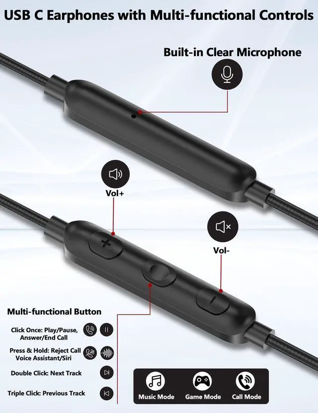 Hifi Stereo USB C Earphones: Adopt Newest Dac Chip And Powerful Dynamic Driver, Delivers 3D Stereo Sound, Provides Lossless Sound To Your Ear, Ensure Efficiency And Immersive Experience When Studying, Conference, Calling, Listening, Video Watching, Gaming, Etc.