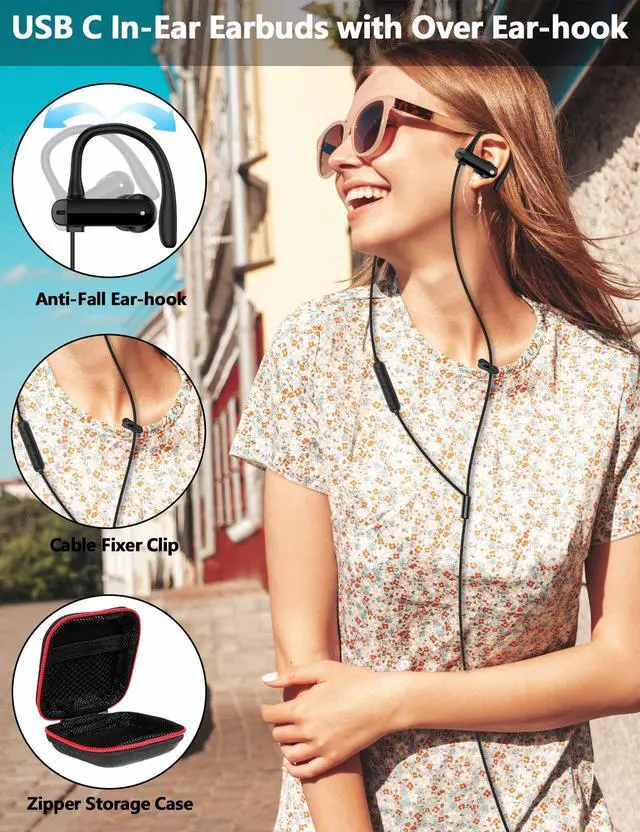 USB C Headphones With Over Ear Hooks for Apple,for Samsung, for Google,for USB C Audio Smartphone,Tablet,Laptop, USB C Earphones with Clear Mic, In Lined Controls, S,M,L Eartips, Zipper Storage Case and Cable Fixer. Perfect for School, Working, Commuting, Traveling, Calling, Music streaming, Studying, Gaming, Live Broadcasting, etc. Support Play,Pause, Answer,End,Reject Call, Skip Songs, Volume + -, Wake Up Siri,Android Voice Assistant