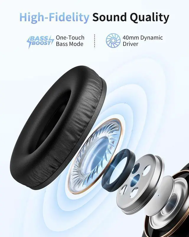 [(One Click to Turn-on Deep Bass)] Dive into rich sound with bass up technology on wegear headphones wireless bluetooth headphones. Feel every beat with enhanced low frequencies, delivering powerful, deep bass for a dynamic audio experience. Perfect for music lovers who crave rich sound and superior comfort during extended listening sessions