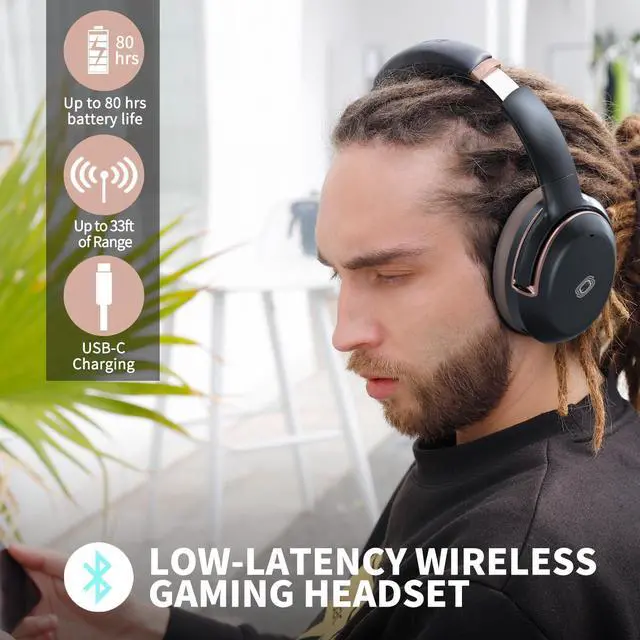 [(Long Battery Life and Fast Charging)] With a built-in rechargeable battery, this headphones can play up to 80 hours of music on a single charge in Bluetooth mode, or up to 60 hours in ANC mode. They also support USB-C fast charging, which can give you 5 hours of playtime with just 20 minutes of charging.
