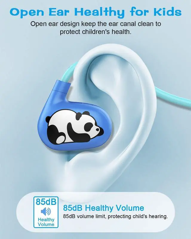• [Perfectly Protect Hearing for Children] Upgraded children's headphones away from the ear compared to over-ear or in-ear headphones, it is based on the surround sound field effect generated by the large 13mm driver, the sound pressure at the ear is well below the healthy threshold of 85dB. Open ear headphones for kids protecting child's eardrums and preventing hearing from permanent damage risk.