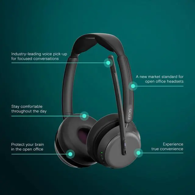Intuitive controls allow you to mute calls by moving the boom arm, while the included contactless charging stand keeps your headset powered at all times. Perfect for office professionals, call centers, and hybrid workers, the EPOS IMPACT 1060T ANC is a wireless PC headset for work, Windows, Mac, and mobile, offering advanced noise reduction and effortless communication.