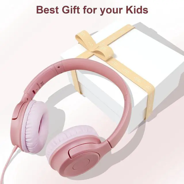 FNSHIP Kids Wired Headphones with Microphone, 85/94dB Safe Volume Limiter,Foldable,3.5mm Jack Over-Ear Cord Headset for Online Study/Travel, Compatible with Tablet,iPad,PC&More,Pink