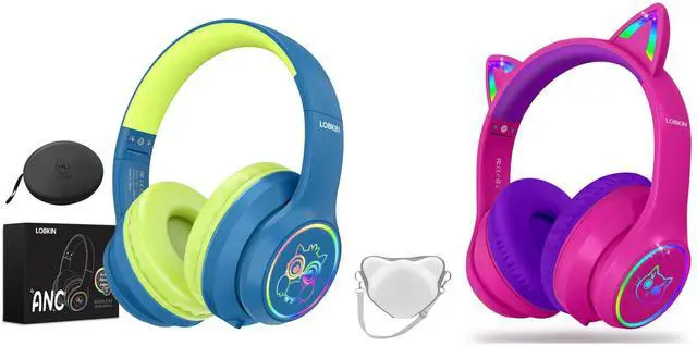 LOBKIN Active Noise Cancelling Headphones for Kids,Bluetooth 5.4,Kids Headphones Wireless with Mic 50H Playtime AUX Cord Safe Volume Limited Foldable for Boy Girl Travel/School/iPad(with LED Lights)