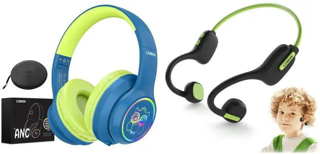 LOBKIN Active Noise Cancelling Headphones for Kids,Bluetooth 5.4,Kids Headphones Wireless with Mic 50H Playtime AUX Cord Safe Volume Limited Foldable for Boy Girl Travel/School/iPad(with LED Lights)