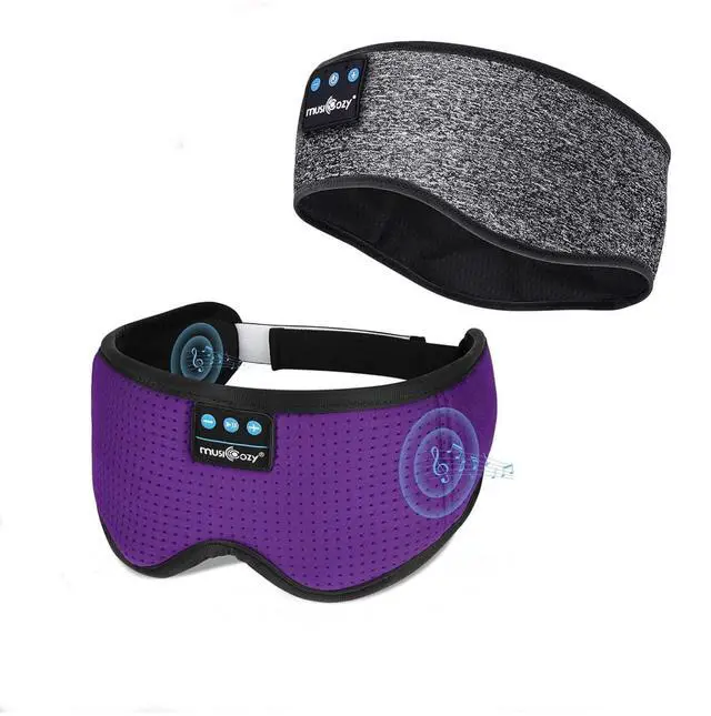 MUSICOZY White Noise Sleep Headphones Bluetooth Headband, Sleeping Headphones Mask, 3D Wireless Music Sleeping Headphones Earbuds for Insomnia Yoga Travel Office Relax Cool Tech Gadgets Gifts 2 Packs