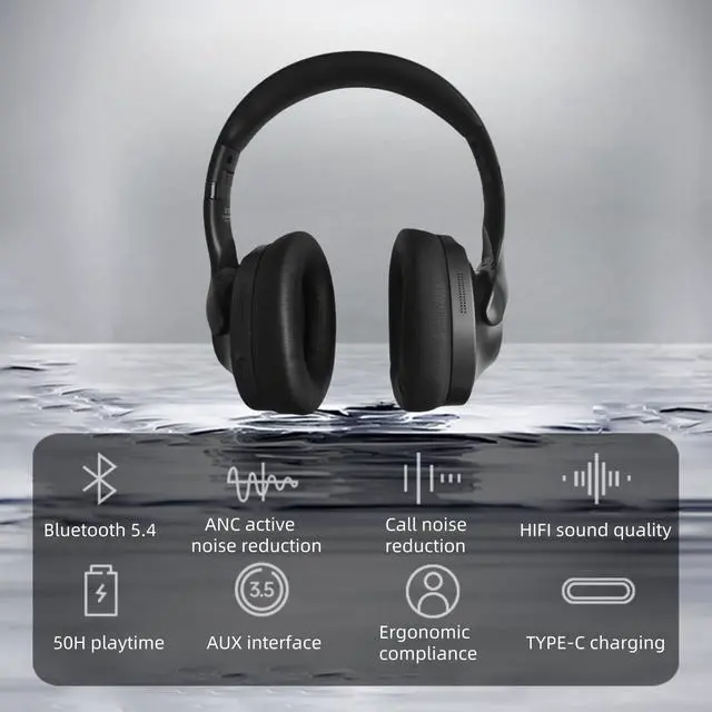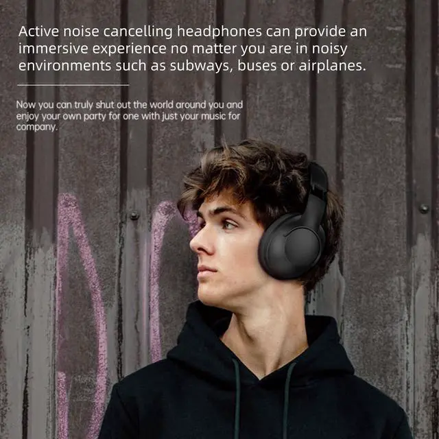 This head-mounted Bluetooth headset uses: ANC active noise reduction technology, which is a headphone technology that combines multiple noise reduction methods to more effectively eliminate external noise and provide a clearer and more comfortable listening experience. By emitting sound waves with the opposite phase to the noise and the same frequency and amplitude, the two interfere with each other during the propagation process, thereby reducing the noise intensity and providing you with high-quality, clear and natural surround sound quality.