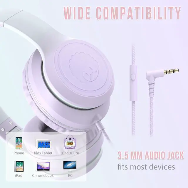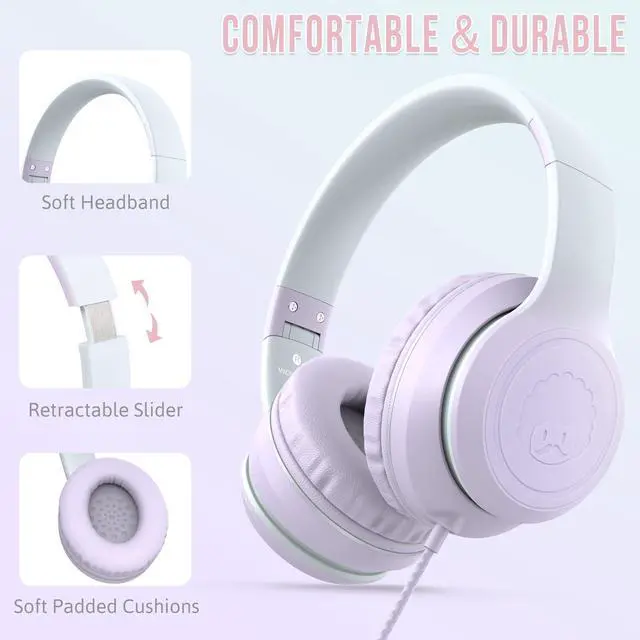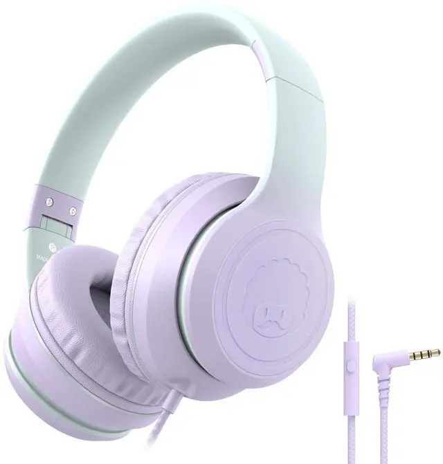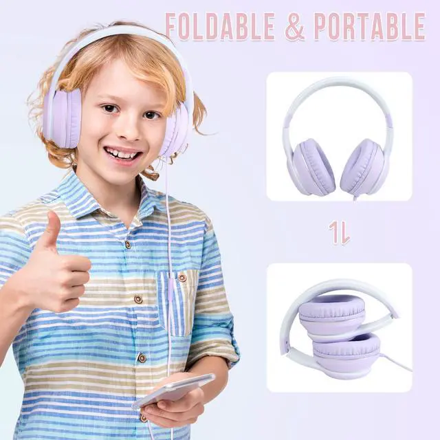 rockpapa L22 Wired Headphones for Kids Girls Boys Women with Microphone, Foldable Stereo 3.5mm Corded Headphones for School Classroom Chromebooks Computer Laptop Phone Airplane (Purple)