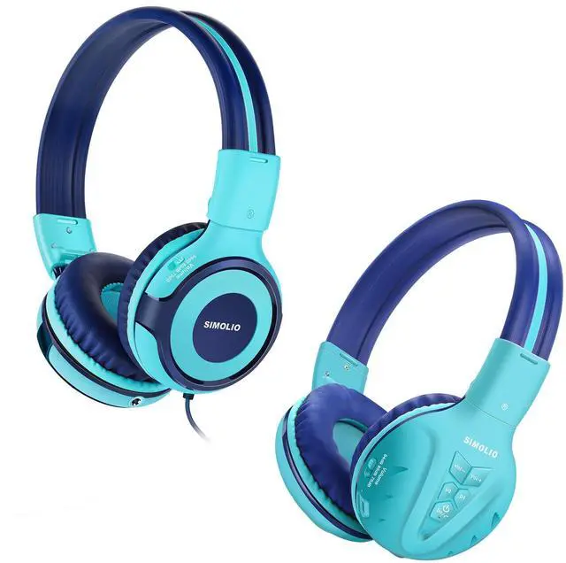SIMOLIO Wired & Bluetooth Kids Headphones Bundles, Safe Volume, HD Mic Stereo Sound, Adjustable Headband, Foldable Durable Children Headsets for Travel School