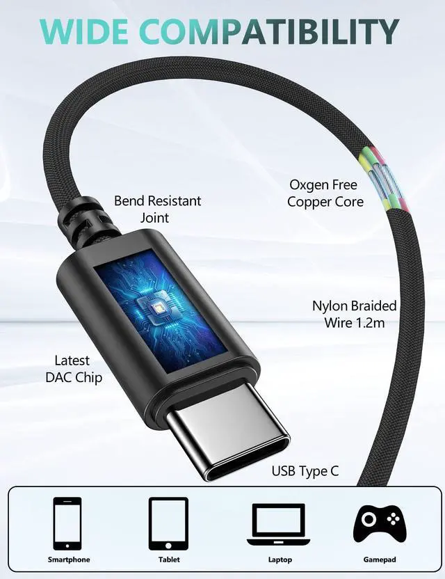 Unique USB C Earbuds: The ear buds are designed with special outline, detailed textures and pretty colors that presented an outstanding look while ensuring the comfortable wearing and excellent listening experiences. Upgraded nylon braided wire with oxygen cooper free core and bend resistant design connector, ensures flexibility and durability