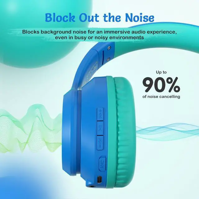 [Advanced Noise Cancellation - Protect Kids' Hearing] Equipped with Hybrid Active Noise Cancelling (ANC) technology, these headphones effectively block out background noise from airplane engines, busy classrooms, or noisy environments. The built-in microphone ensures clear, safe communication, while volume-limiting features help protect your child's delicate ears.