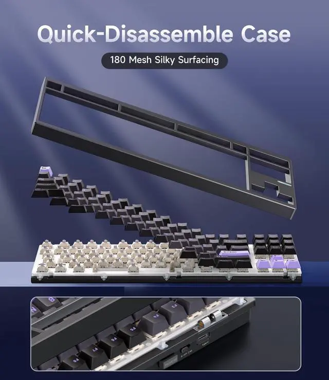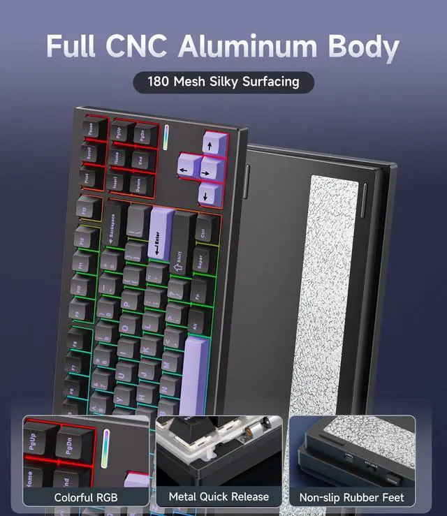 The MCHOSE GX87 is an unbeatable mechanical keyboard that offers exceptional customization, superior build quality, and affordability. With its quick disassemble case, full CNC aluminum body, 5-layer gasket mount, hot-swappable switches, and QMK/VIA customization support, it delivers a premium tactile typing experience and unlocks endless personalization possibilities. If you wanna know about the different variations, check under specs tab!