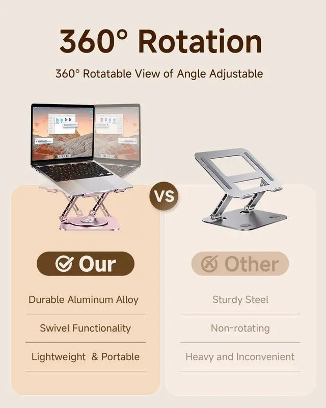 360RotationLaptop stand for desk 360 rotatable, Two-axis connecting with the base, makes the rotation more flexible, allows you to swivel your laptop to any angle. It is very suitable for sharing content in meetings or communication ^^