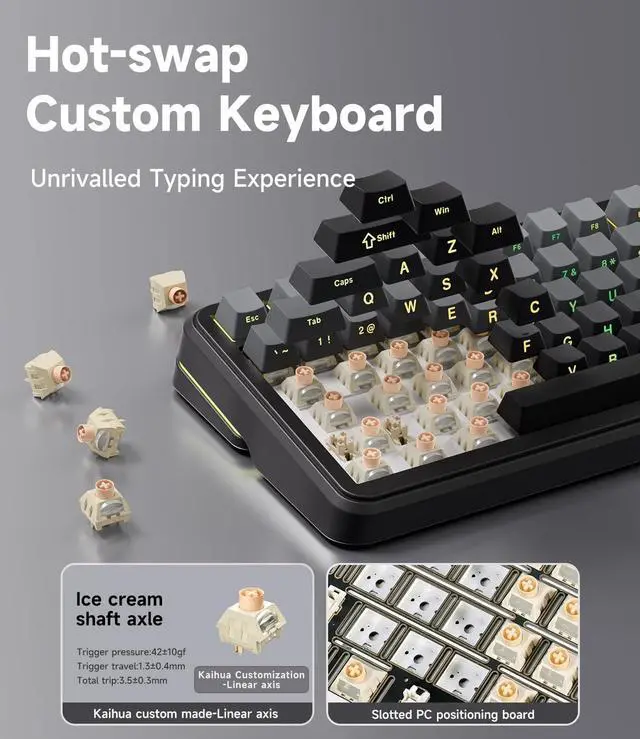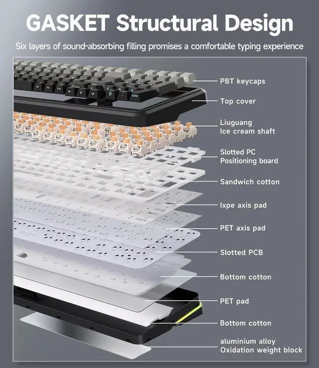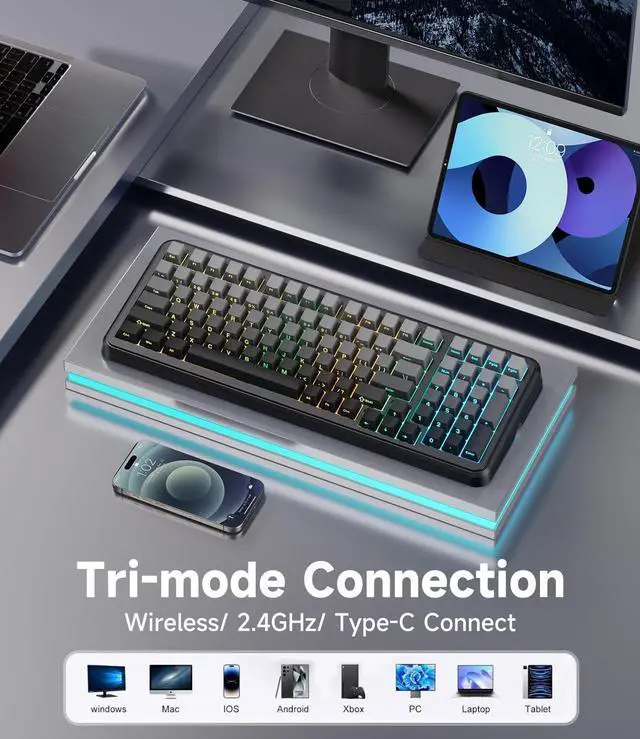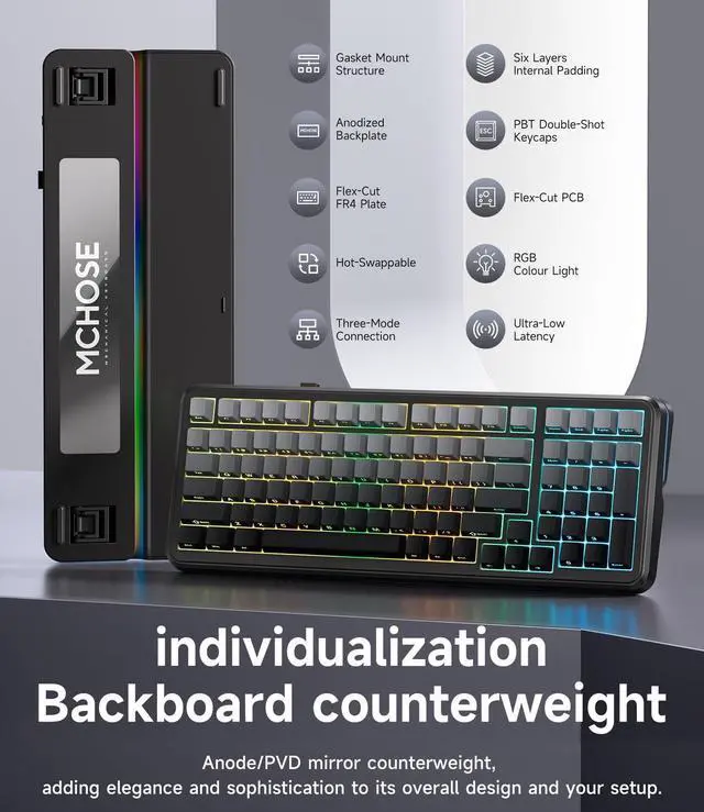 MCHOSE K99 98% Wireless Mechanical Keyboard, Tri-Mode Connection, Compact Gaming Keyboard with Six-Layer Padding Gasket, RGB Backlit,Hot Swappable Custom Keyboard for Mac/PC