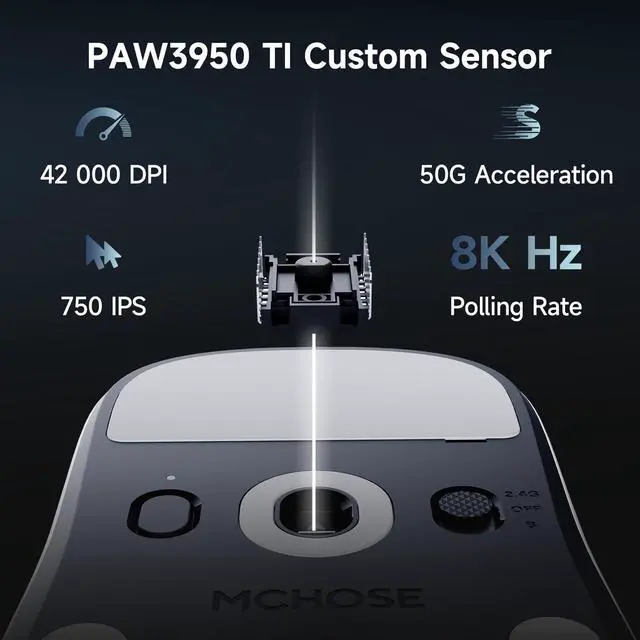 [PAW3950 TI Custom Sensor]: Experience next-level precision with the PAW3950 TI, engineered for professional gamers who demand flawless accuracy and lightning-fast response. Delivering pixel-perfect tracking with up to 42,000 DPI, 750 IPS, and 50G acceleration, every flick and every aim is consistently on point.