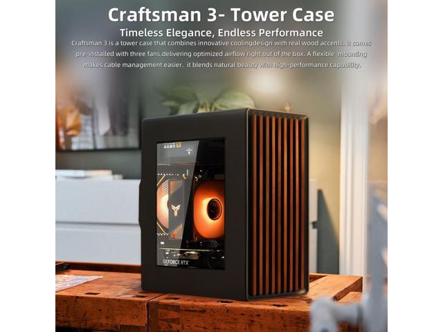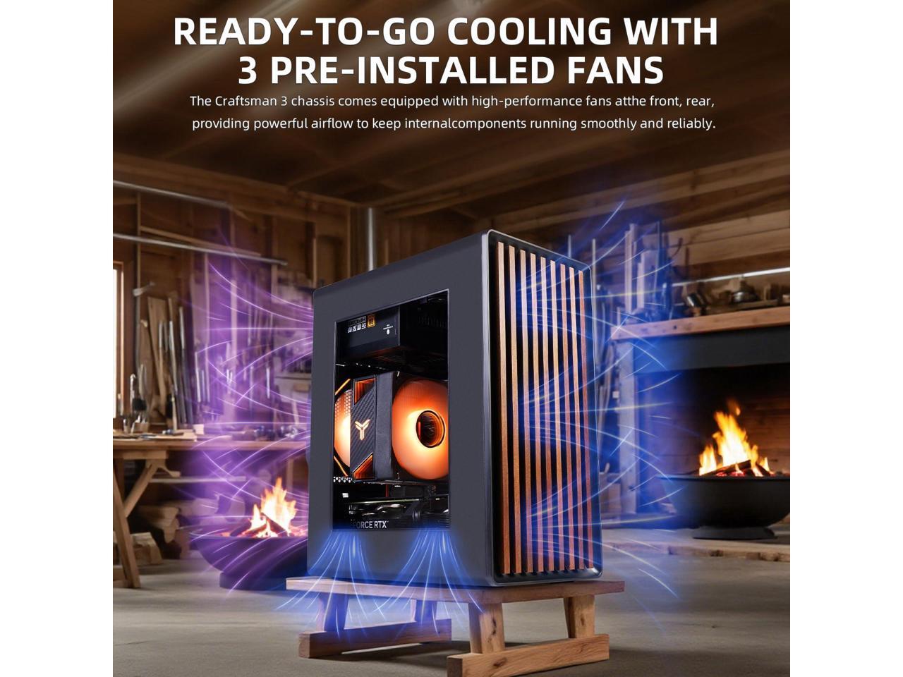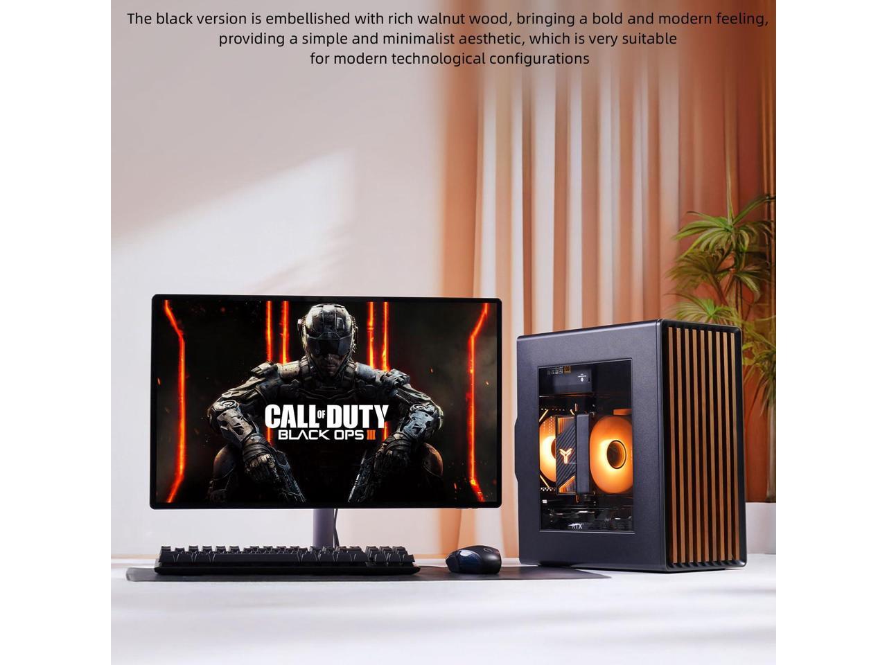 - DESIGN FEATURES: Elegant solid wood strip front panel combined with mesh side panel for optimal airflow and aesthetics in a black tower PC case