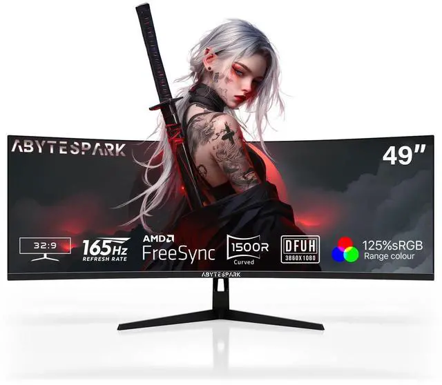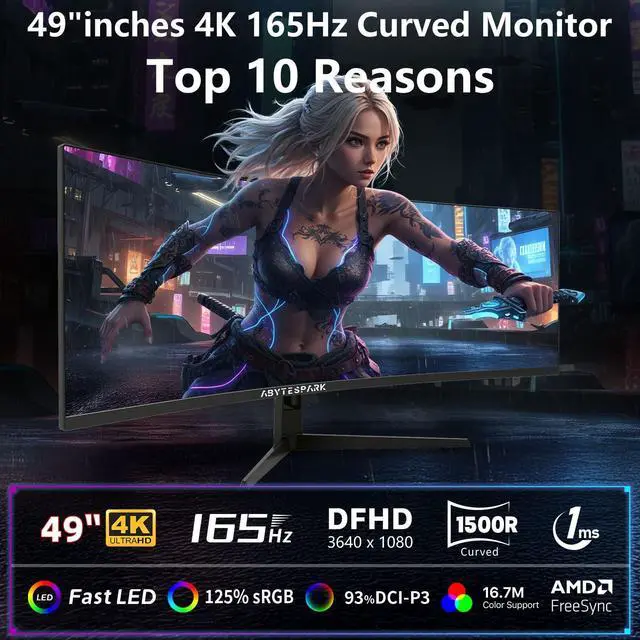 49 inch Ultra Wide Curved Monitor has a 32:9 aspect ratio, providing a wider visual effect, and a 4K resolution of 3860 * 1080 captures game details more clearly. The curvature of 1500R and a wide viewing angle of 178 surround your field of view, allowing you to master the entire map and achieve maximum immersion ^^ Intelligent split screen technology improves work efficiency: The 49 inch Ultra Wide Curved Monitor is equipped with PIP/PBP technology, which supports splitting two signal sources on one screen and simultaneously playing, watching, streaming, or working from multiple input sources without any errors in details, creating more interesting and innovative things. ^^ Adaptive synchronization and 165Hz refresh technology: The 49 inch 4K curved ultra wide display provides a high refresh rate of 144Hz/165Hz to enjoy a super smooth gaming experience. AMD FreeSync technology eliminates screen tearing and stuttering, ensuring responsive performance for electronic gaming, 3D design, and daily PC use.