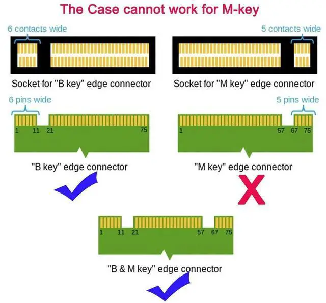 3. The adapter only work for B-key or B/M-key socket NGFF SSD, cannot work for M-key socket.