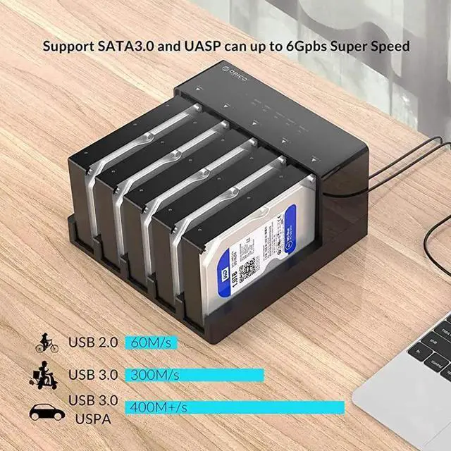Offline Clone and Duplicator: The 5 Bay External hard drive docking station can be used to Offline offline cloning / Duplicator from an source hard drive to target disk without connecting to a computer, or as external storage to transfer data between a hard drive and your computer. ***** *****3. USB 3.0 Hard Drive Dock Superspeed up to 5