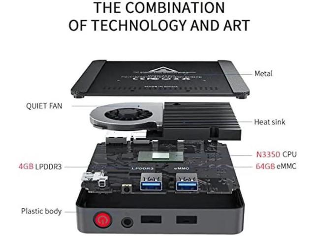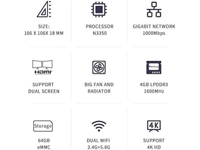 JAENFONG T4 PRO Mini PC, Mini Desktop Computer with Apollo Lake N3350, 4GB LPDDR3 + 64GB EMMC, 2.4G / 5.8G WiFi, BT 4.0, 1000 Mbps LAN, Dual HDMI, Windows 10, WOL, Auto Power On