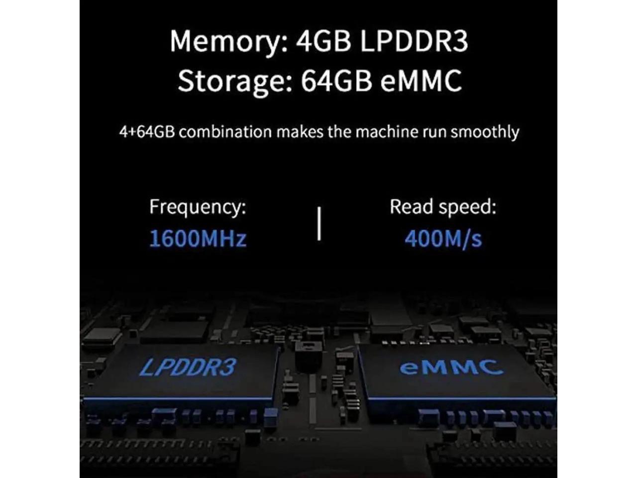 - [4GB LPDDR3 + 64GB EMMC] Integrated 4GB RAM 64GB ROM makes the machine run smoothly, which is a perfect computer for handling complex spreadsheets, high-definition video, and seamless multi-tasking.